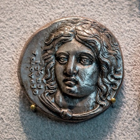 (左:クラゾメナイの硬貨。アポローン神)